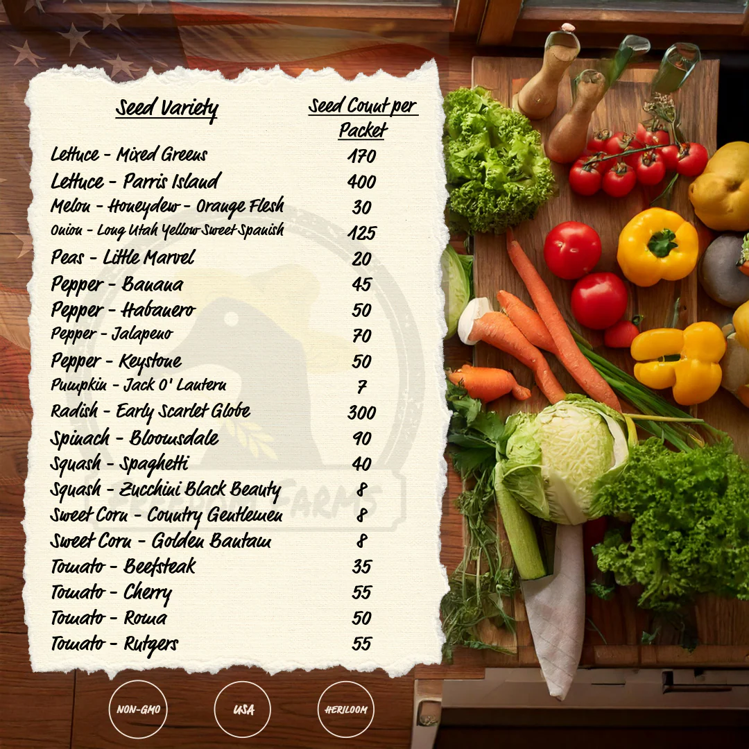 All seeds are NON-GMO, heirloom, and have high germination rates!
